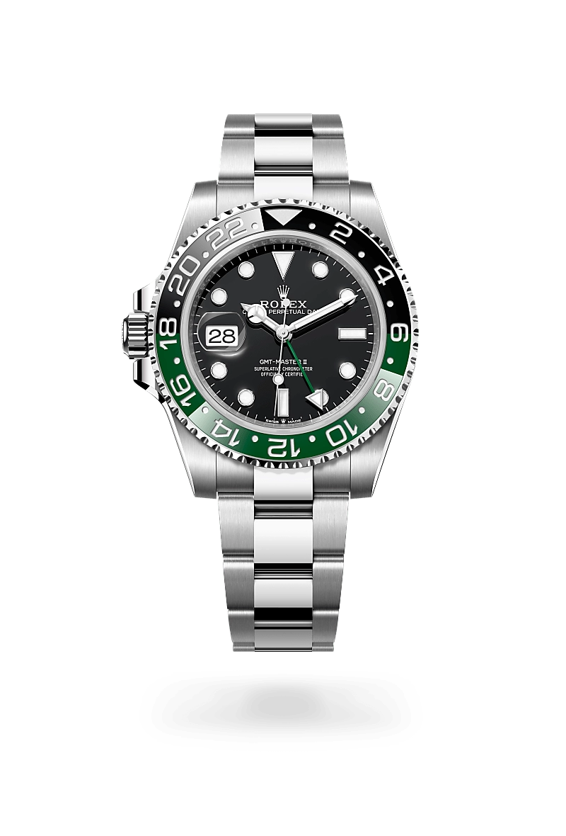 L’Oyster Perpetual GMTMaster II est conçue pour afficher simultanément l’heure de deux fuseaux horaires. Robuste et fonctionnelle, elle est la montre idéale pour celles et ceux qui arpentent le monde. Lancée en 1955, la GMTMaster a été le témoin privilégié de l’essor des vols intercontinentaux dès la seconde moitié du XXe siècle. Elle est même devenue la montre officielle de la Pan American World Airways, à l’époque la plus importante compagnie d’aviation internationale américaine.